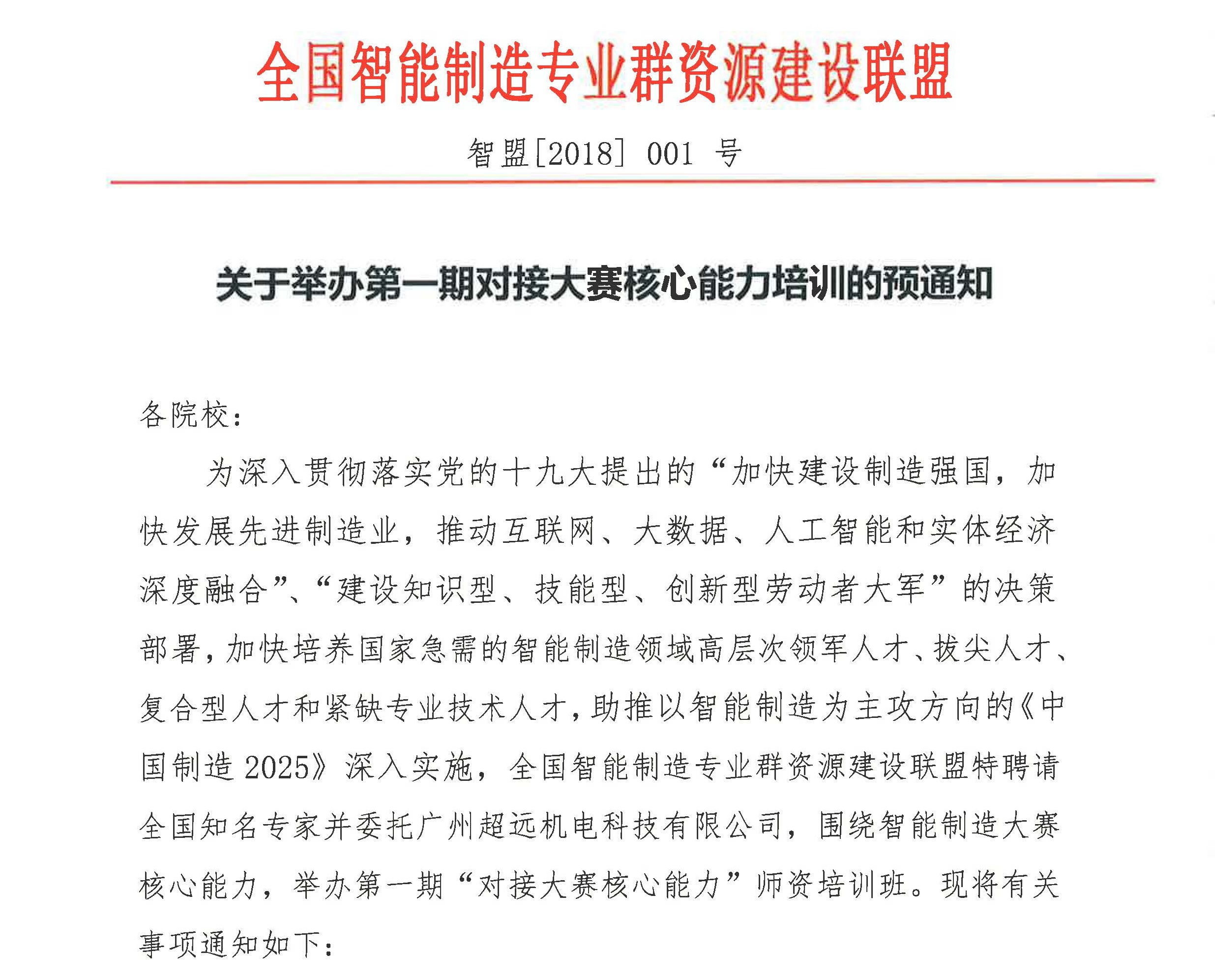 關于舉辦智能制造核心能力培訓的通知